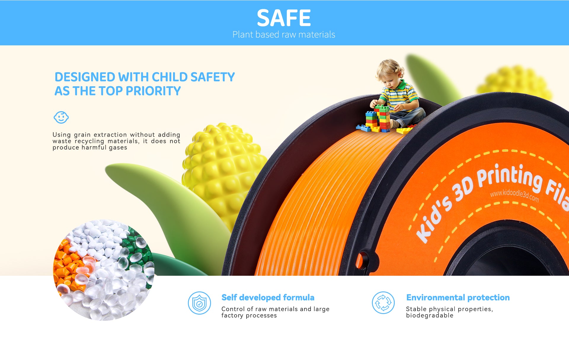Made from plant-based materials and engineered for minimal fumes, our filament is non-toxic and safe for home or classroom use. Its low-shrinkage formula (0.1–0.3 %) keeps prints accurate and distortion-free, while our eco-friendly manufacturing helps reduce environmental impact.