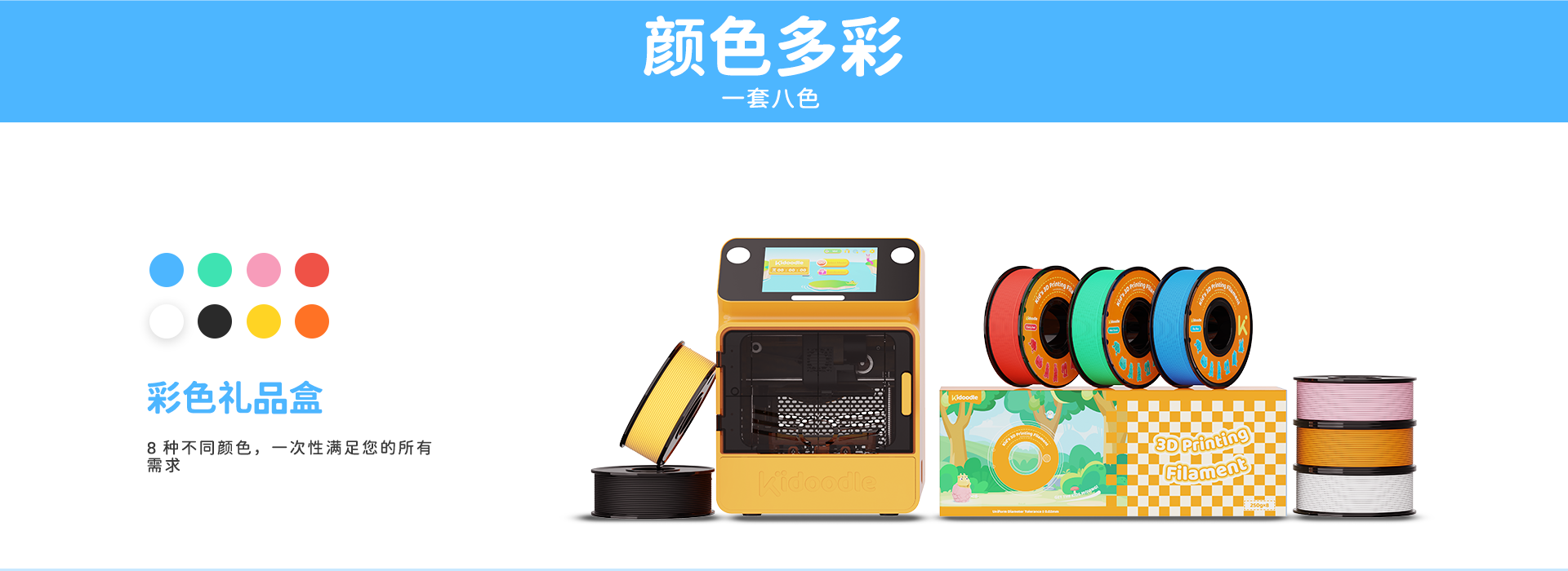使用 Kidoodle Mini 提升您孩子的 3D 打印冒险体验 Box A1 Best Mate 细丝,专为 Mini 设计 盒装 A1 打印机。每套包含八个 250 克的鲜艳线轴,为年轻的创新者提供充足的材料进行实验和创作。