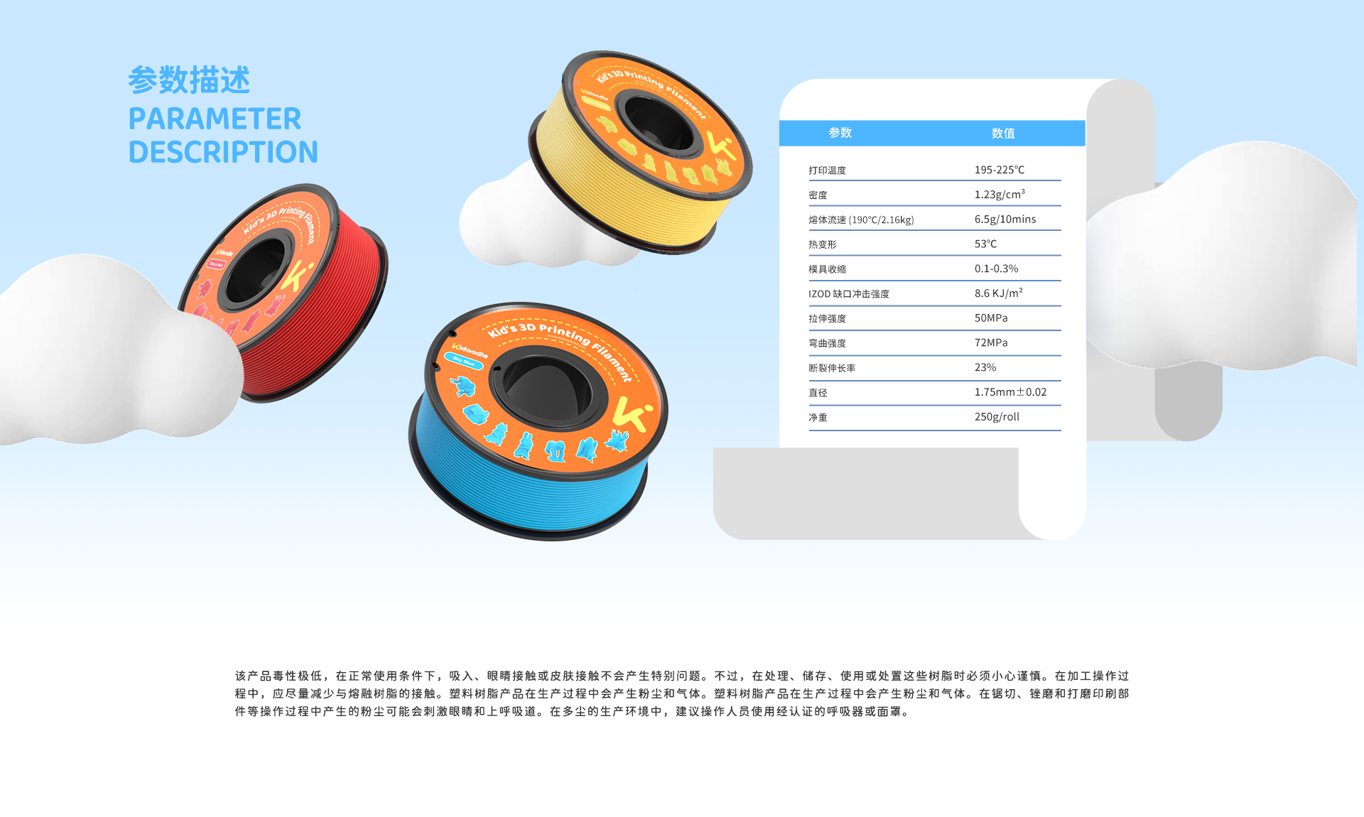 这款耗材拥有 6.5 克/10 分钟的均衡熔融指数,可确保稳定的流量并减少堵塞,让年轻用户轻松设置和操作。坚固的线轴设计和清晰的温度指示有助于快速学习和独立打印。